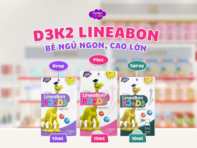 Bộ ba sản phẩm D3K2 Lineabon giúp cung cấp đầy đủ lượng D3 và K2 cần thiết cho trẻ.