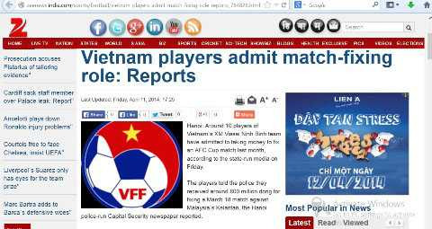 Zeenews (Ấn Độ): “Cầu thủ Việt Nam thừa nhận dàn xếp tỷ số”