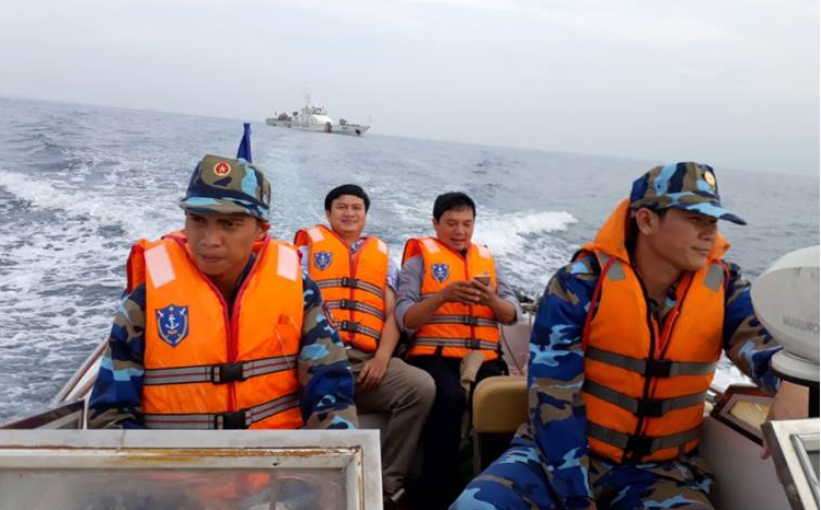 Cán bộ kỹ thuật của VNPT và lực lượng cảnh sát biển cùng tuần tra một số vùng biển có cáp quang đi qua.