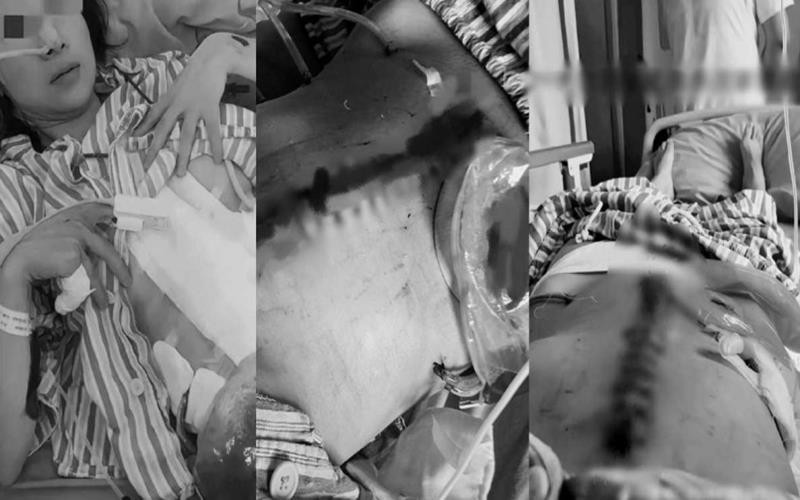 Những hình ảnh mà cô Tạ cung cấp cho thấy nhiều vết thương trên khắp cơ thể, bụng cô bị rạch bằng một dụng cụ cùn, vết thương kéo dài từ gần ngực đến rốn, thủng cả thận, tụy, phổi. Các cơ quan nội tạng khác và xương sườn bị thương ở các mức độ khác nhau, cộng với tá tràng bị nhiễm trùng. Bụng dưới bên phải của cô phải treo túi phân suốt đời.