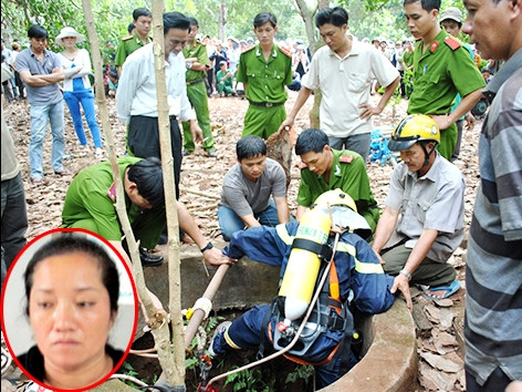 | Lực lượng chức năng xuống giếng để tìm chứng cứ (ảnh lớn) và bà Lê Thị Hường (ảnh nhỏ) |