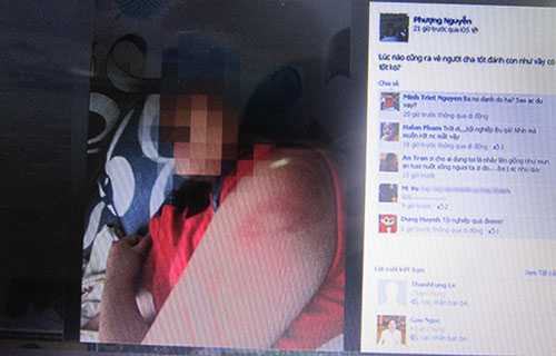 Trước đó ngày 16-5, trên mạng xã hội Facebook ở trang cá nhân có tên Phượng Nguyễn đăng nhiều hình ảnh cháu N.H.T. (9 tuổi) bị đánh sưng bầm mặt, tay và lưng. Chủ trang Facebook này là mẹ của cháu T., người đánh đập là cha của cháu. Nhiều người đã vào bình luận với nội dung giận dữ, lên án hành vi đánh đập cháu T..
