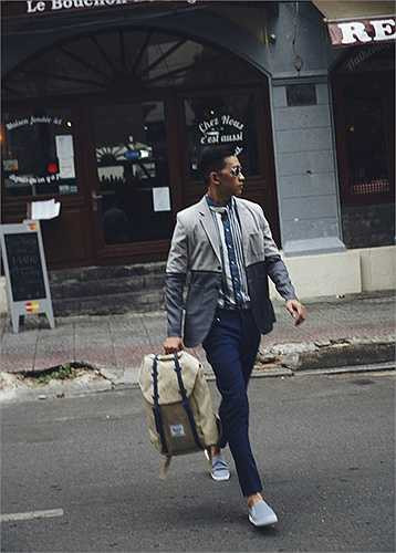 Võ Cảnh ghi điểm với giới mộ điệu thời trang bằng phong cách thời thượng. Võ Cảnh điển trai trên phố