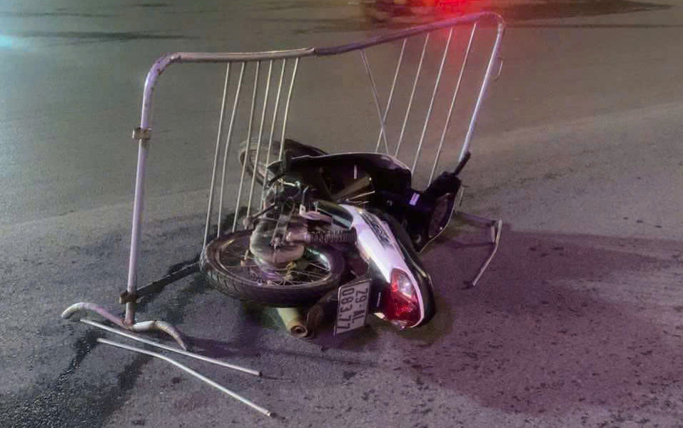 Chiếc xe máy lao vào hàng rào barie mới chịu dừng lại.