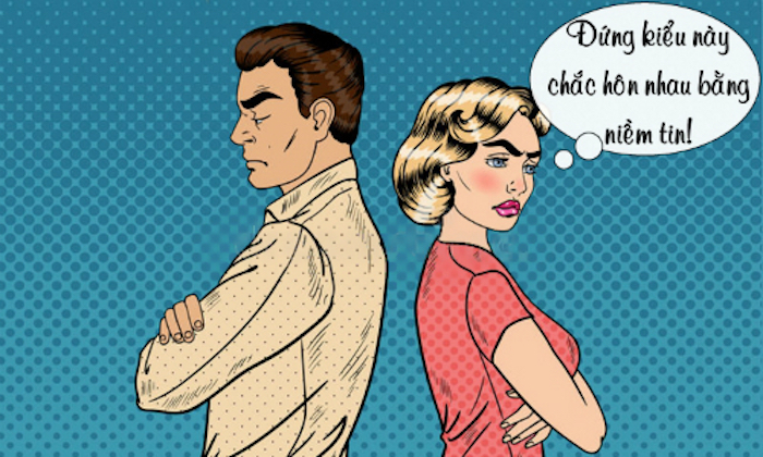 - Ơ, điên à? - cô vợ ngạc nhiên - Đứng như thế thì hôn bằng kiểu gì được?