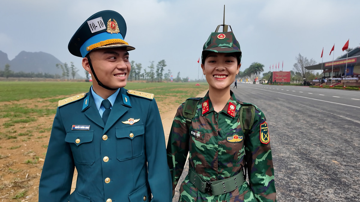 Trong hàng nghìn cán bộ chiến sĩ có cặp vợ chồng chỉ mới cưới 1 tuần cùng tham gia diễu binh, diễu hành kỷ niệm 50 năm Giải phóng miền Nam