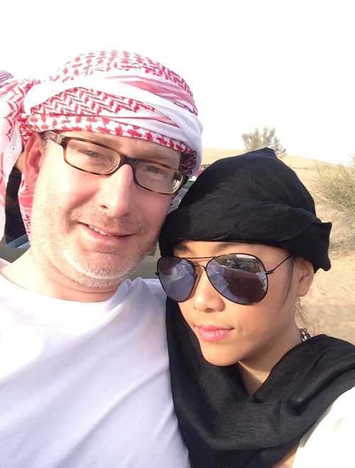 Cặp đôi chọn điểm đến là Dubai. Họ thích thú khi được quấn khăn như người dân địa phương, dạo chơi trên sa mạc hoang vắng.