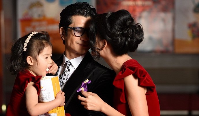 Cả hai không ngại thể hiện tình cảm trước mặt hai con gái.