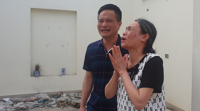 Hai vợ chồng ông bà Lẫm Quyết ôm chầm nhau đầy tủi khổ, họ chỉ biết khóc sau tất cả những gì đã trải qua.