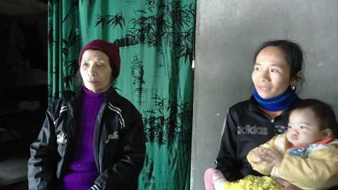 | Chị Minh (người bế cháu Sao Mai) và bà Tuyết mẹ chị Đào |