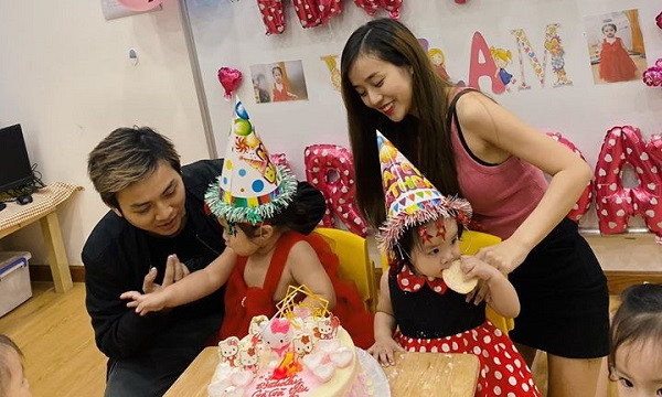Tối 19/11, Bảo Ngọc - vợ của Hoài Lâm khoe ảnh vợ chồng cô đến trường tổ chức sinh nhật cho bé Gà Gà - một trong 2 cô công chúa của cặp đôi. "Sinh nhật sớm cho Gà Gà tại trường, 2 tuổi" - Bảo Ngọc chia sẻ. Đây là lần hiếm hoi vợ chồng Hoài Lâm khoe ảnh có đủ mặt 4 thành viên trong gia đình.