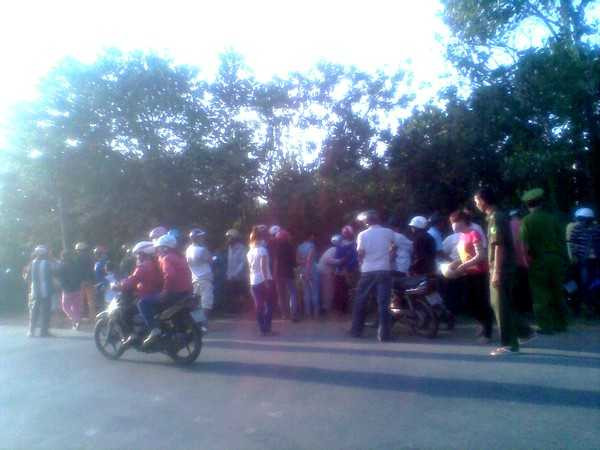 | Người dân hiếu kỳ tập trung ở khu vực xảy ra án mạng theo dõi |