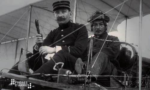 | Đỗ Hữu Vị (ngồi sau), con trai ông Phương được nhiều tài liệu cho là phi công đầu tiên của Việt Nam. Ảnh: S.T |