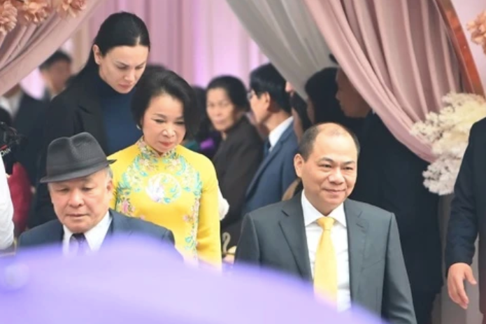 Doanh nhân Phạm Nhật Vượng và bà Phạm Thu Hương trong ngày vui của con.