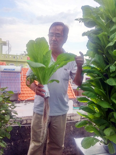 Biết vợ mang bầu, để đảm bảo nguồn thực phẩm sạch cho vợ con, anh Trương Bình Sơn (34 tuổi) ở quận Gò Vấp đã tự mày mò xây dựng nên một vườn rau bằng phương pháp khí canh và thủy canh, rất tiết kiệm ngân sách mà lại phù hợp với sân thượng nhỏ gọn của gia đình. Đặc biệt, sản lượng rau thu hoạch được khiến nhiều người phải... há hốc: Cứ mỗi một tháng thì sẽ thu hoạch được 20 – 40kg rau sạch trên 1m2.