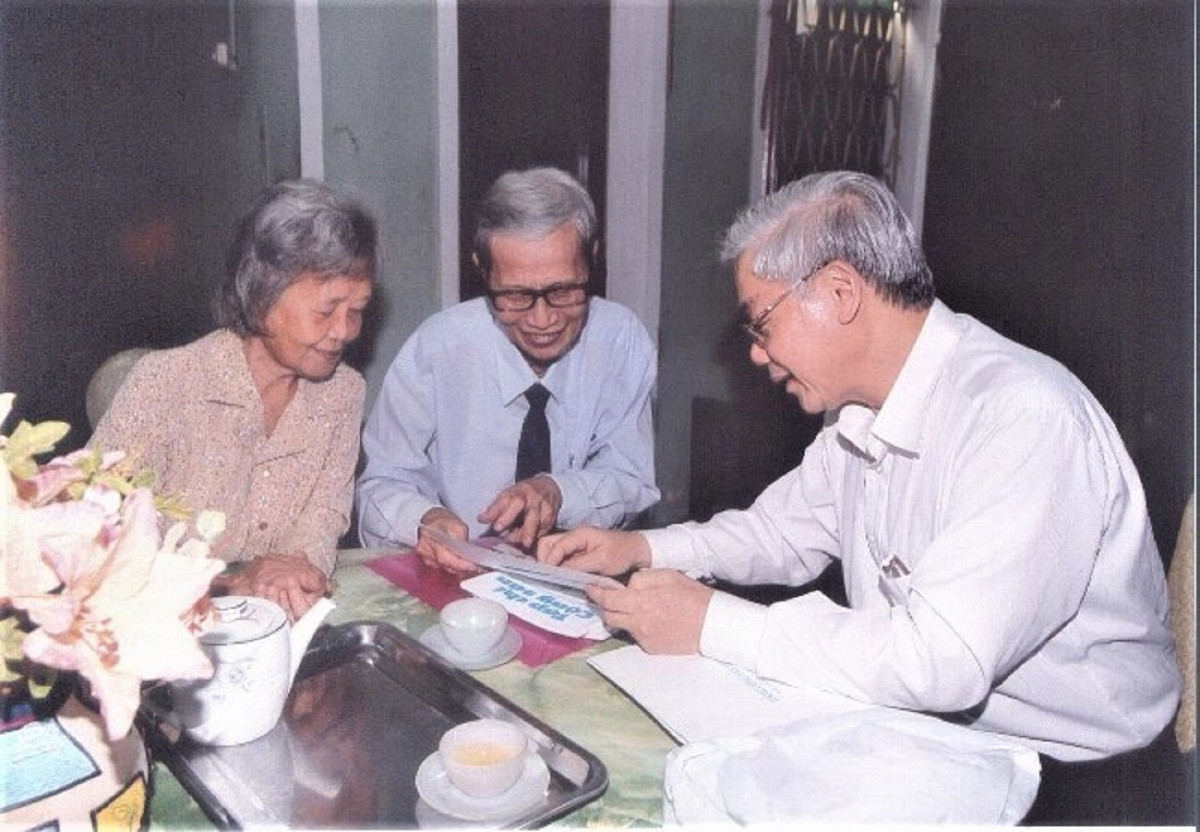 Tổng Bí thư Nguyễn Phú Trọng thăm vợ chồng thầy Lê Đức Giảng tại nhà riêng của thầy ở số 163 Nguyễn Thái Học (TP Quy Nhơn). (Ảnh tư liệu gia đình cung cấp).