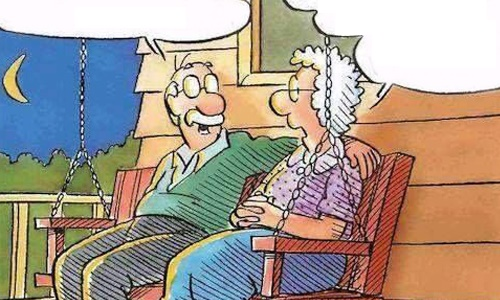 Buổi tối, hai người đang xem TV, ông già đứng dậy đi vào bếp. Bà vợ hỏi: