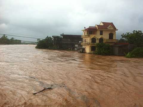 | Nhà dân bị ngập nặng sau sự cố vỡ đập xả lũ hồ Đầm Hà |