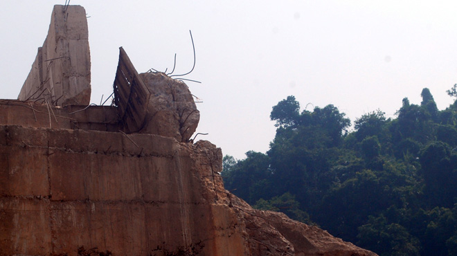 | Những mảng bêtông vỡ ra từ đập thủy điện Đakrông 3 |