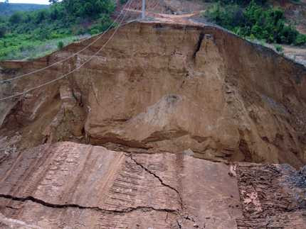 Hiện trường đập thủy điện Ia Krêl 2 bị vỡ vào ngày 12/6/2013