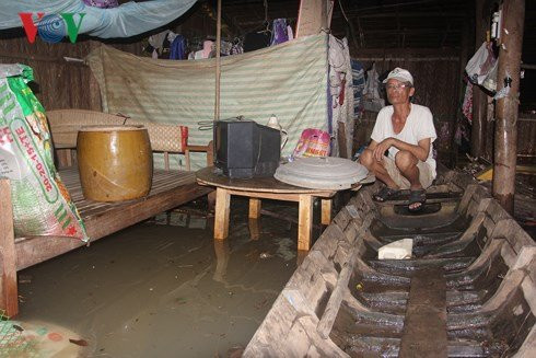 Nước vào ngập nhà, người dân phải đi lại bằng xuồng.