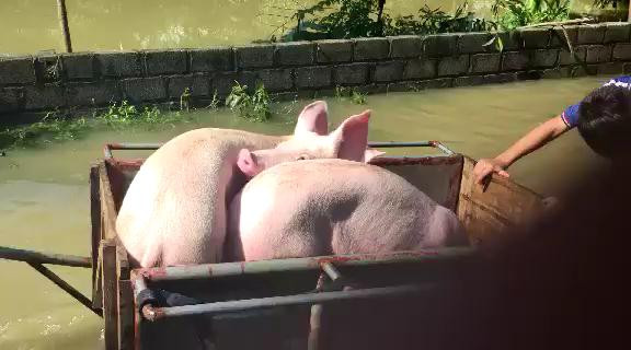 Vỡ đê ở Chương Mỹ: Nước ngập ngang người, dân hối hả vác lợn chạy lụt