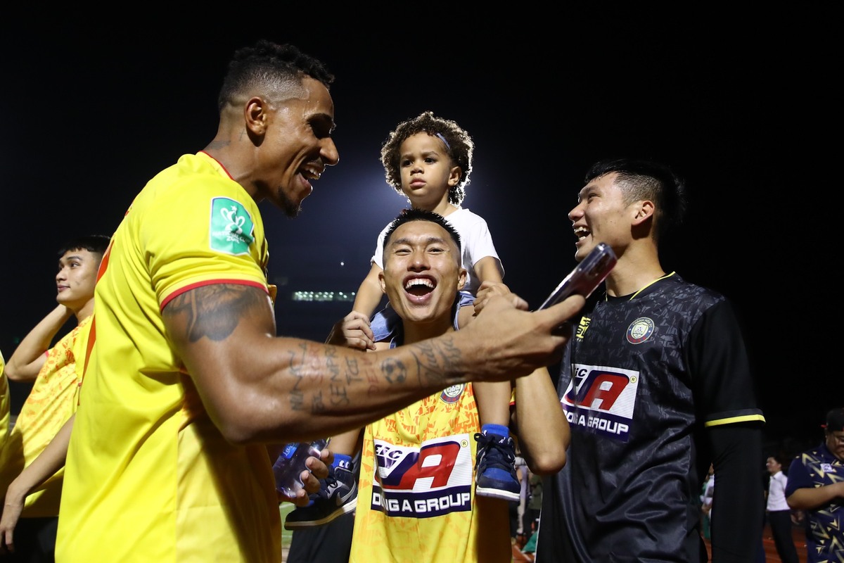 Các cầu thủ chia sẻ hạnh phúc với người thân và cổ động viên. Đã rất lâu, bóng đá xứ Thanh mới có không khí lễ hội như ngày hôm nay.
