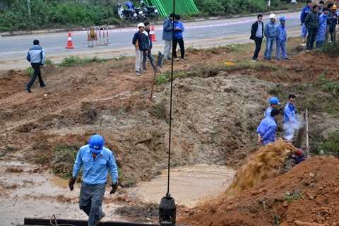 | Hiện trường một vụ vỡ ống dẫn nước sạch sông Đà |
