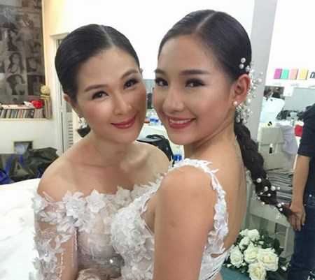Kiều Oanh cùng nữ diễn viên Mạc Anh Thư xuất hiện rạng rỡ trong bộ váy cưới.
