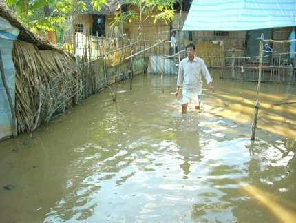 | Hàng trăm căn nhà ở Cù Lao Dung (Sóc Trăng) bị ngập vì trên 160 đoạn đê vỡ. Ảnh: Diễm Hằng |