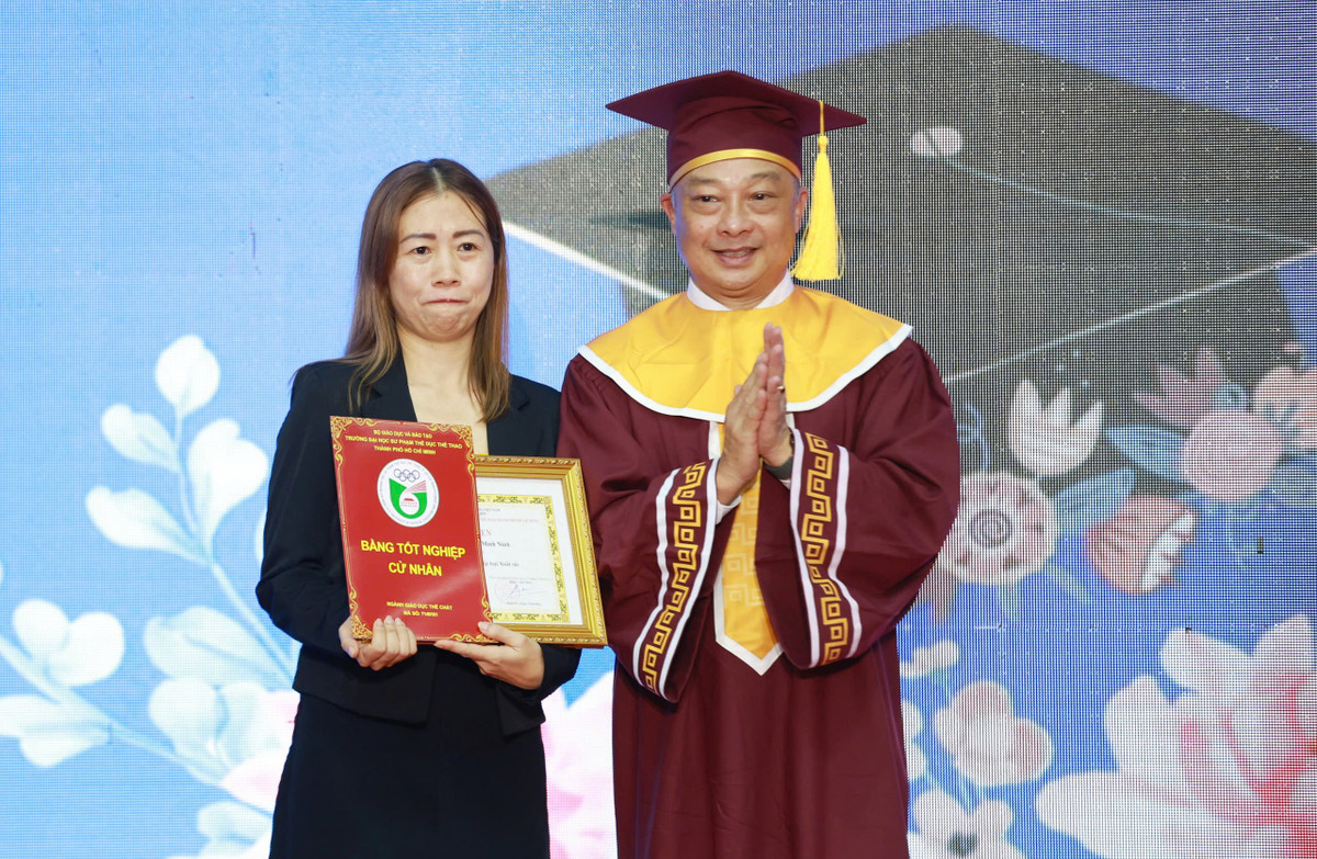 Tháng 8/2023, HLV Dương Minh Ninh qua đời vì tai nạn giao thông. Vợ của vị huấn luyện viên quá cố thay chồng đến dự lễ tốt nghiệp, rưng rưng nước mắt nhận tấm bằng cử nhân loại Xuất sắc.
