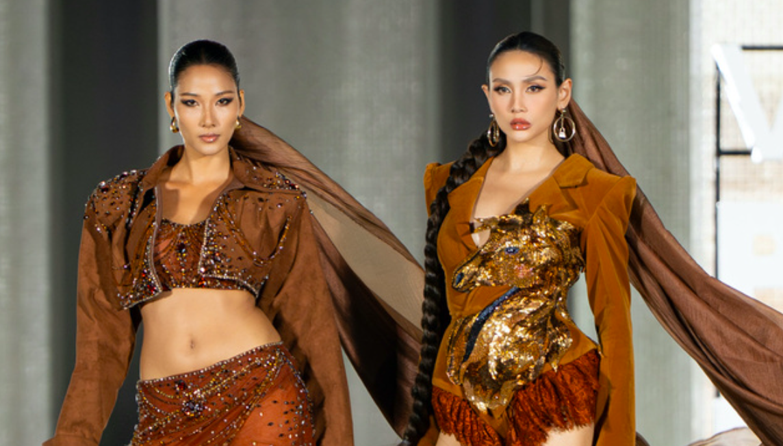 Với bảng màu cam, nâu, đỏ trầm, các thiết kế mang tinh thần tiết chế, tập trung vào phom dáng và chuyển động, tạo cảm giác mạnh mẽ nhưng không phô trương.