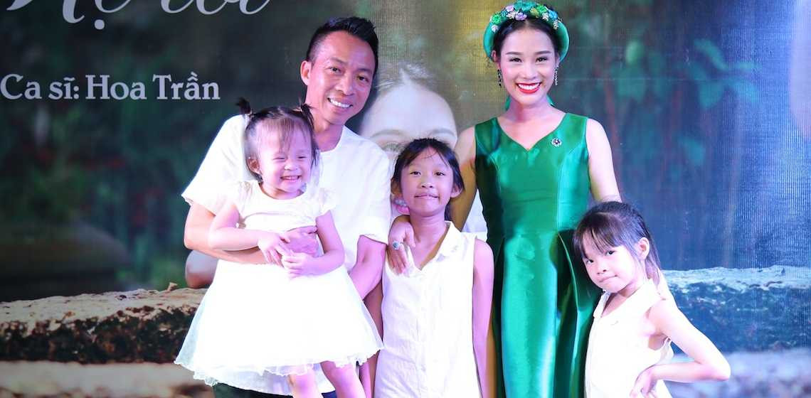 Hòa Trần cùng chồng - ca sĩ Việt Hoàn và ba con gái trong buổi họp báo giới thiệu sản phẩm âm nhạc đầu tay