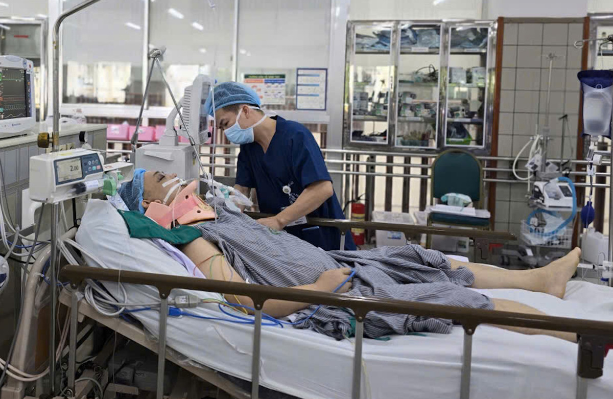 Tai nạn khiến anh Long chấn thương cột sống, bị liệt tứ chi, tay chân hoàn toàn mất cảm giác. Các bác sĩ vẫn theo dõi tình trạng, đặc biệt là phần tụ máu trong não. Nếu xuất huyết não xảy ra, anh có thể sẽ phải đối diện với ca phẫu thuật phức tạp, đầy rủi ro.