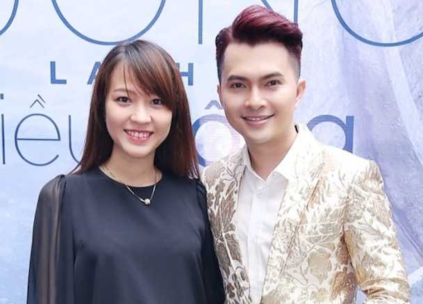 Vợ Hoa khôi của Nam Cường giấu bụng bầu 5 tháng đến chúc mừng chồng ra mắt album nhạc Bolero.