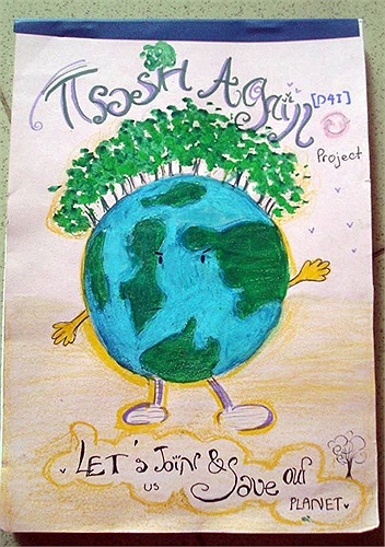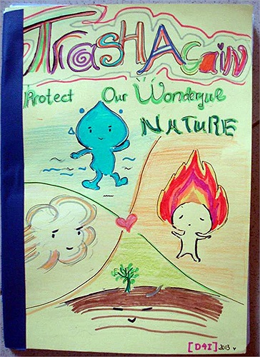 Sáu bạn trẻ này đang là tiến hành dự án mang tên Trash Again, với mục đích nâng cao nhận thức của các bạn học sinh trên địa bàn thành phố Hà Nội về tầm quan trọng của việc tiết kiệm giấy.