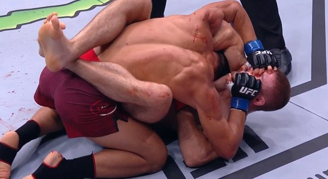Tình huống này diễn ra ở hiệp 2 khi Matthews kẹp được cổ đối thủ và thực hiện một đòn khóa cổ phía trước (guillotine choke) thành công. Trong nỗ lực thoát ra, võ sĩ đến từ Trung Quốc đã sử dụng hai ngón tay móc vào mắt của Matthews.