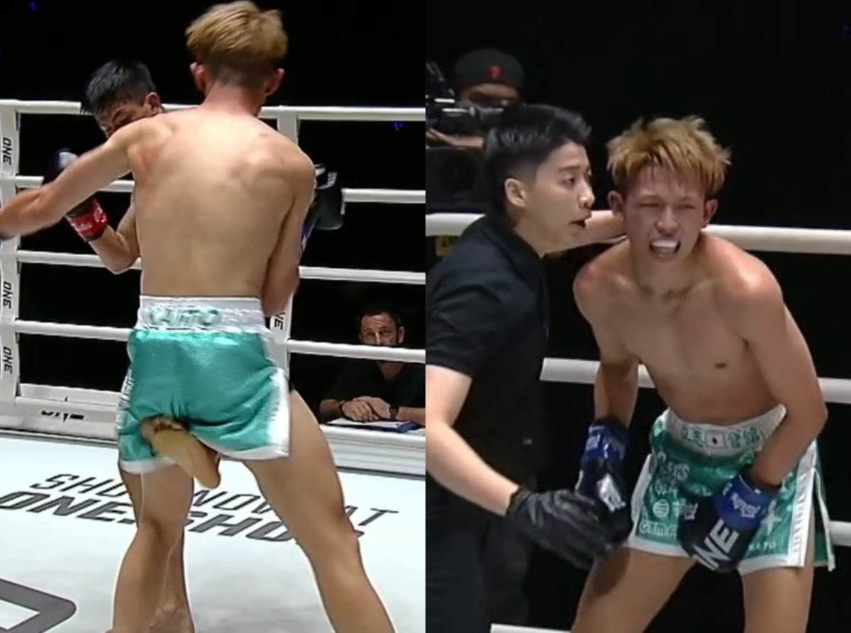 Võ sĩ Trung Quốc, Lam Thiện Đằng đã tung cú đá vào hạ bộ của đối thủ người Nhật Bản, Kaito Sakaguchi trong trận kickboxing ở sự kiện ONE Friday Fights 68: Prajanchai vs. Di Bella diễn ra tại Thái Lan hôm 28/6.