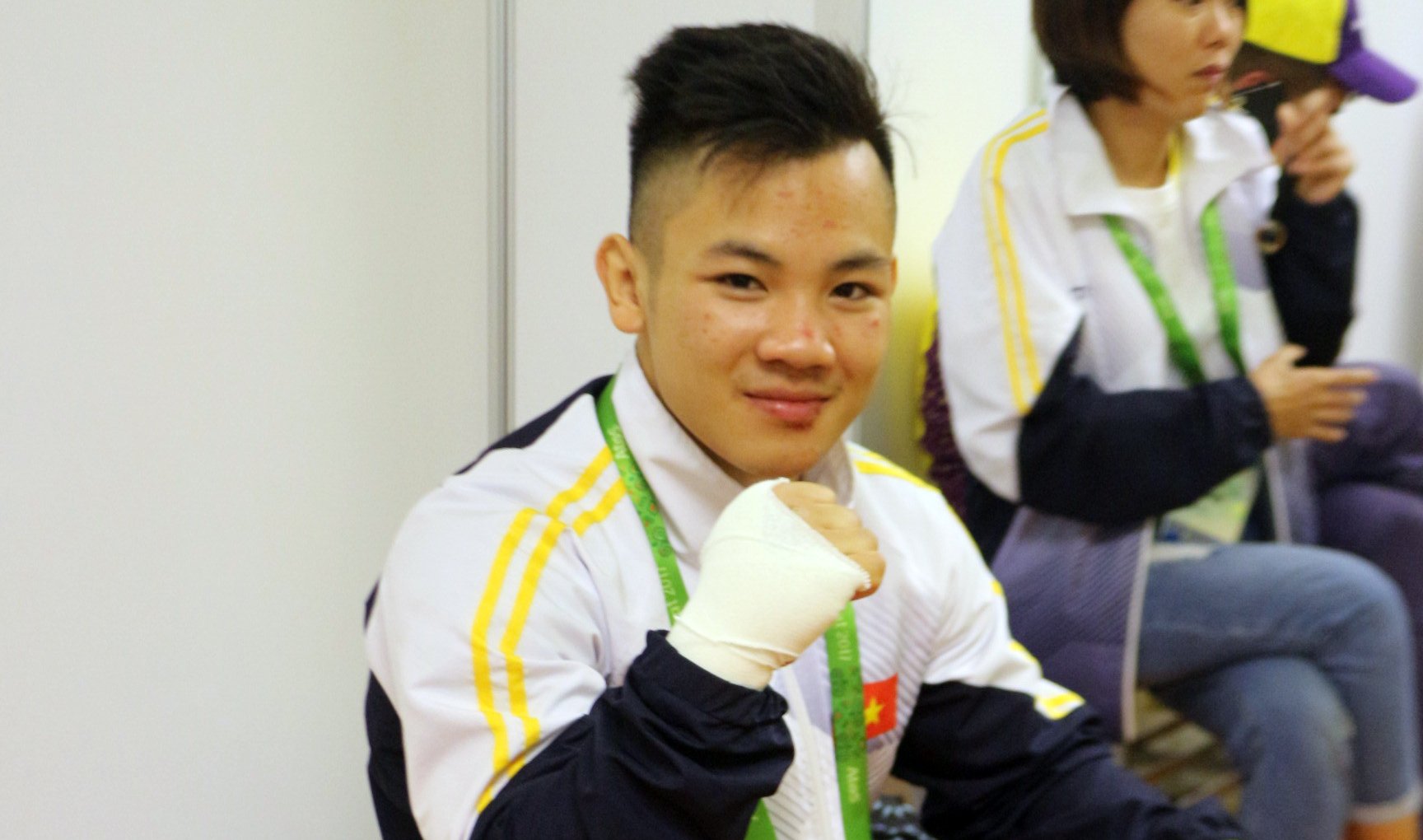 Chia sẻ với báo giới trong phòng khởi động sau khi nhận thống báo đầy bất ngờ của BTC, võ sinh 19 tuổi người Hà Nội cho biết: "Em không buồn lắm, vì em đã làm tất cả những gì có thể. BTC quyết rồi thì phải chịu thôi...".