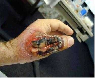 | Vết thương lở loét sau 10 ngày bị nhện độc cắn. Ảnh minh họa |