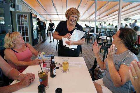 Bà Ann Lepage, vợ của Thống đốc tiểu bang Maine ở Mỹ làm việc bồi bàn tại một nhà hàng hải sản chuyên phục vụ khách du lịch ở bến cảng để kiếm thêm thu nhập.