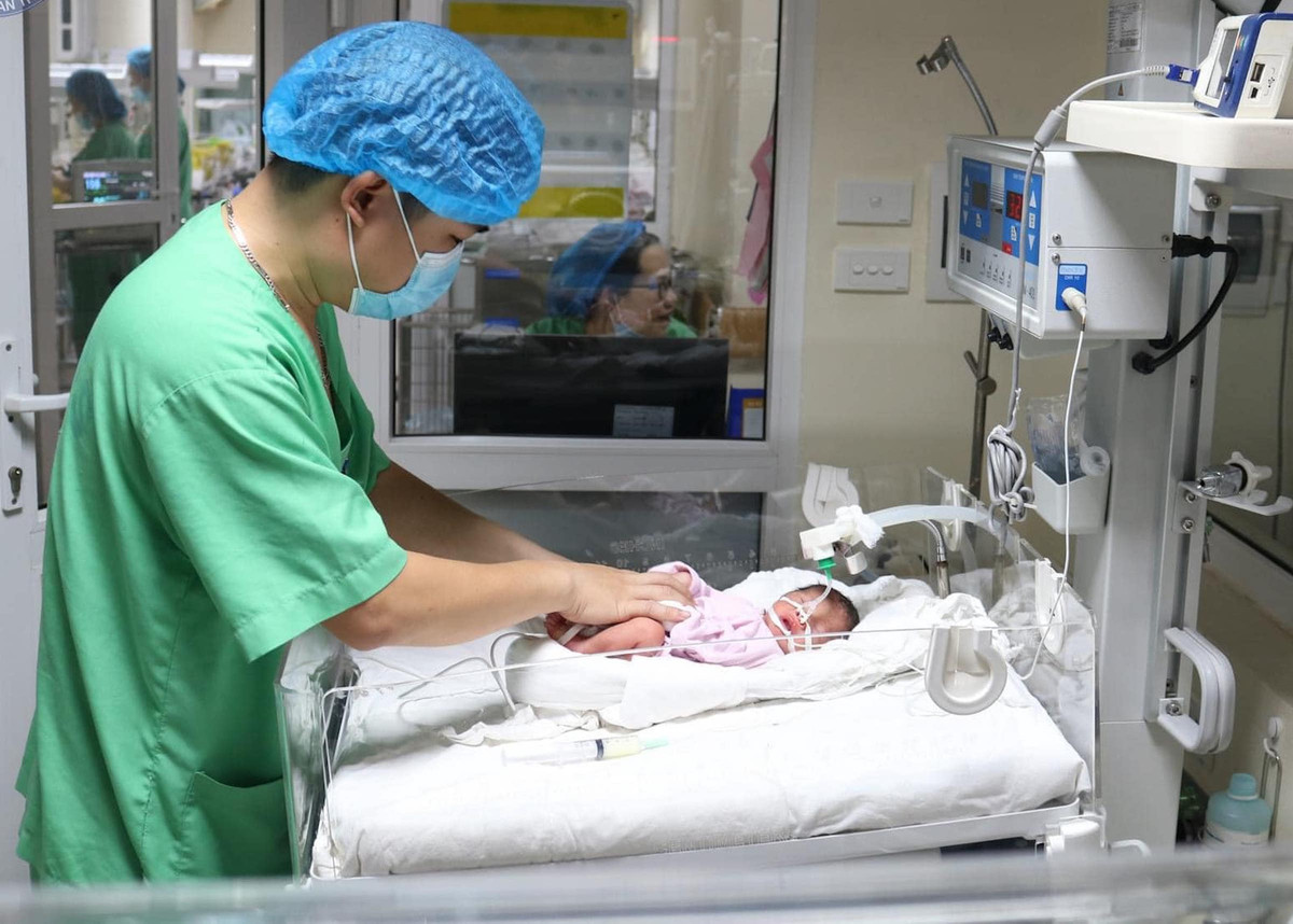 Sau hơn một giờ phẫu thuật, hai bé nặng 2kg và 1,8kg chào đời. Các bác sĩ cũng khâu phục hồi và bảo tồn tử cung cho người bệnh.