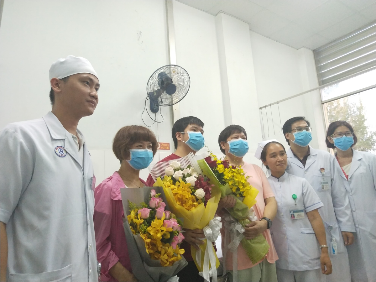 Khoảng 17h30 ngày 12/2, bác sĩ Nguyễn Tri Thức - Giám đốc Bệnh viện Chợ Rẫy - trao giấy xuất viện cho ông Li Ding, 65 tuổi - bệnh nhân viêm phổi do virus Covid-19 thứ hai được chữa khỏi ở TP.HCM. Đến đón ông có vợ và con trai là Li Zichao, người từng là bệnh nhân nhiễm Covid-19 được điều trị tại đây, xuất viện ngày 4/2.