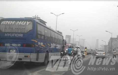 | Xe khách Anh Huy - Đất Cảng mang BKS 29B-059.59 ngang nhiên đón trả khách ở đường lên xuống nút giao Khuất Duy Tiến - Nguyễn Trãi ngày 10/10/2014. |