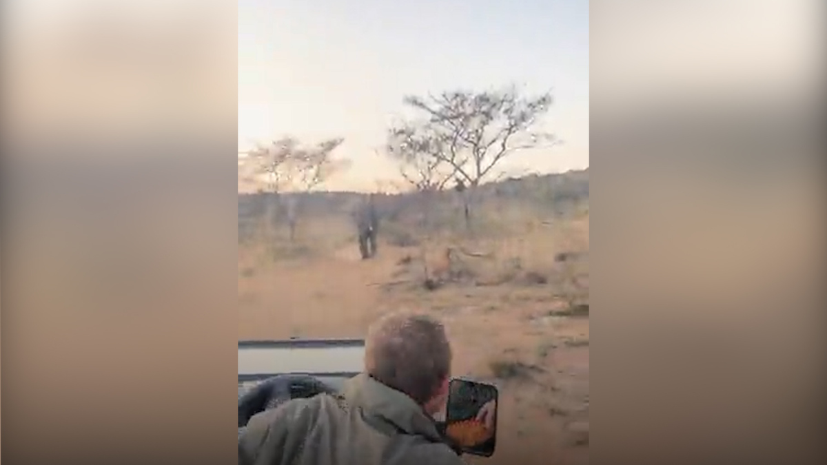 Con voi trong khu bảo tồn động vật hoang dã tại Nam Phi đã giận dữ đuổi theo chiếc xe chở du khách đi thăm quan.