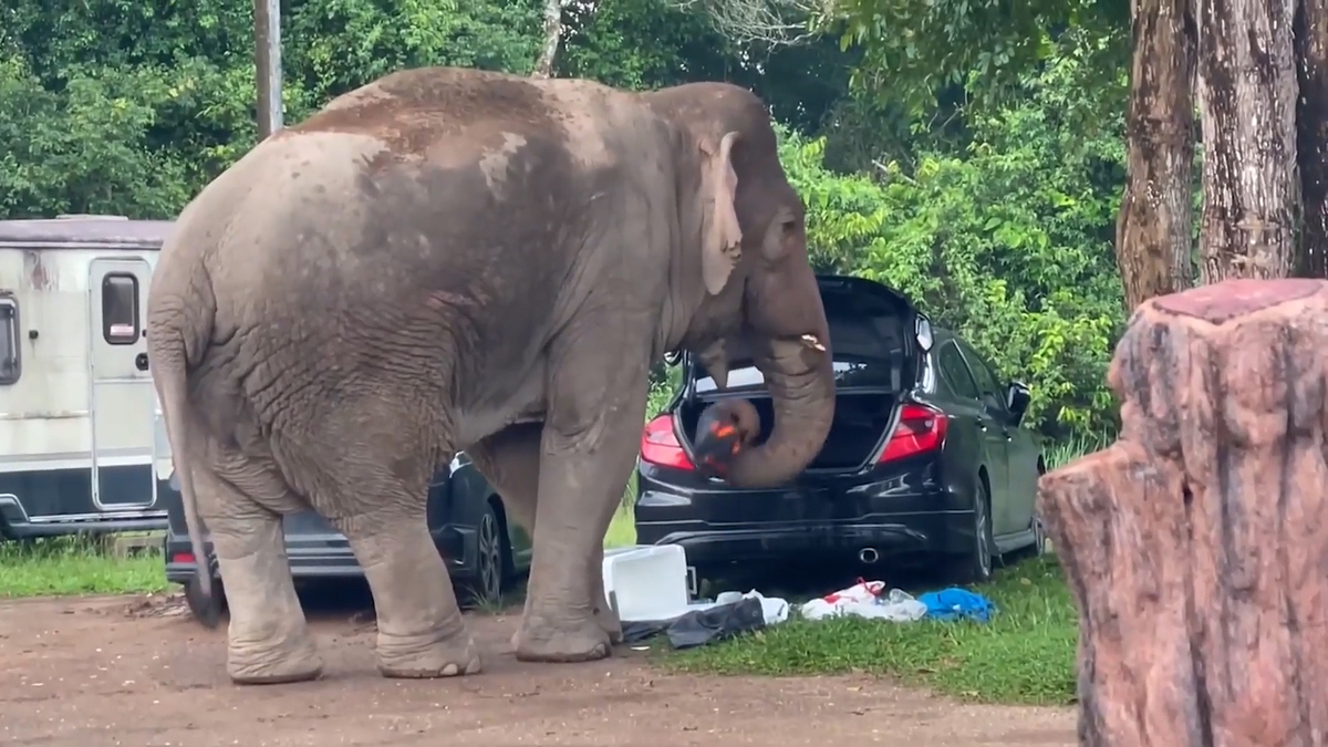 Voi hoang dã trộm thức ăn trong cốp ô tô