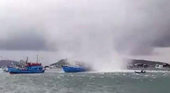 Hình ảnh vòi rồng tấn công nhóm tàu cá. (Ảnh cắt ra từ video)
