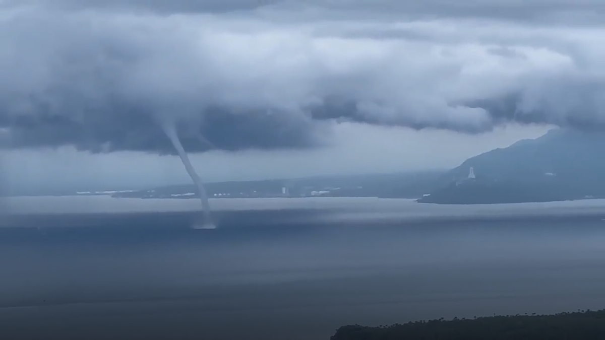 Vòi rồng xuất hiện từ một khối mây "lơ lửng" trên các đảo bãi biển ở Puerto Galera, Philippines.