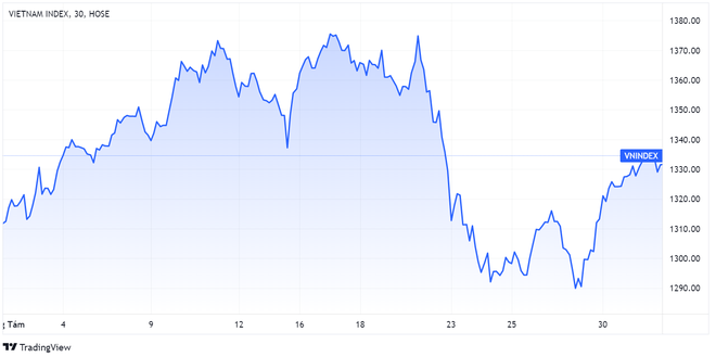 Diễn biến VN-Index trong tháng 8. Đồ thị: TradingView. |
