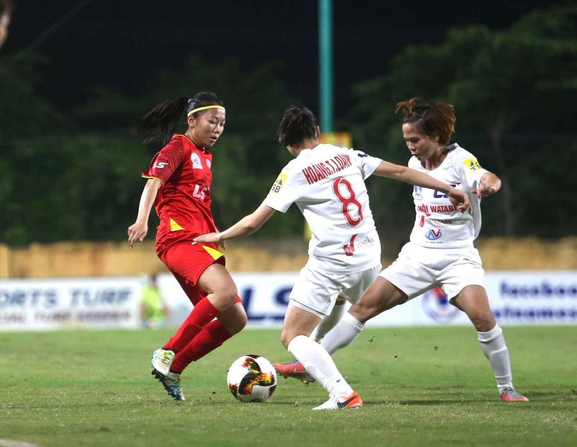 Điểm mạnh từ 2 tiền vệ biên giàu tốc độ và kĩ thuật là Bùi Thị Trang và Ngân Thị Vạn Sự là cơ sở để HLV Nguyễn Anh Tuấn tin vào 3 điểm cho Hà Nội I Watabe.